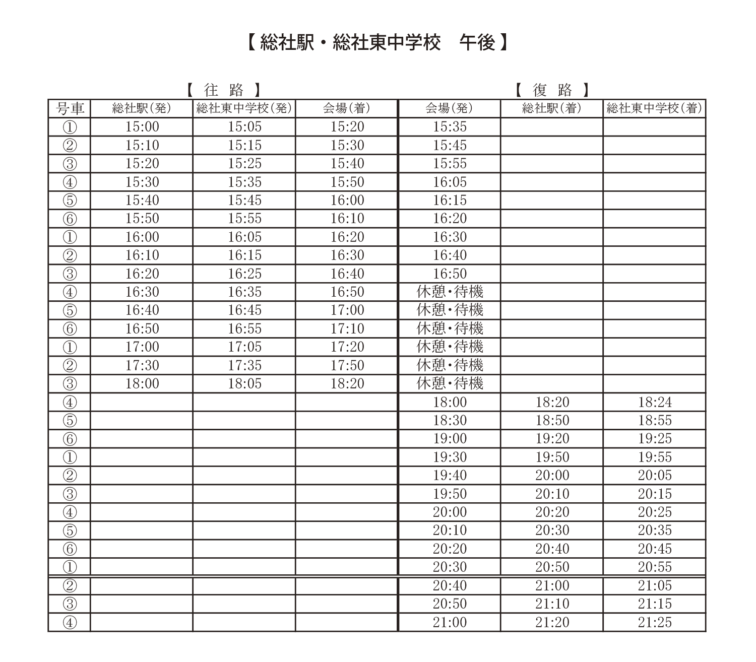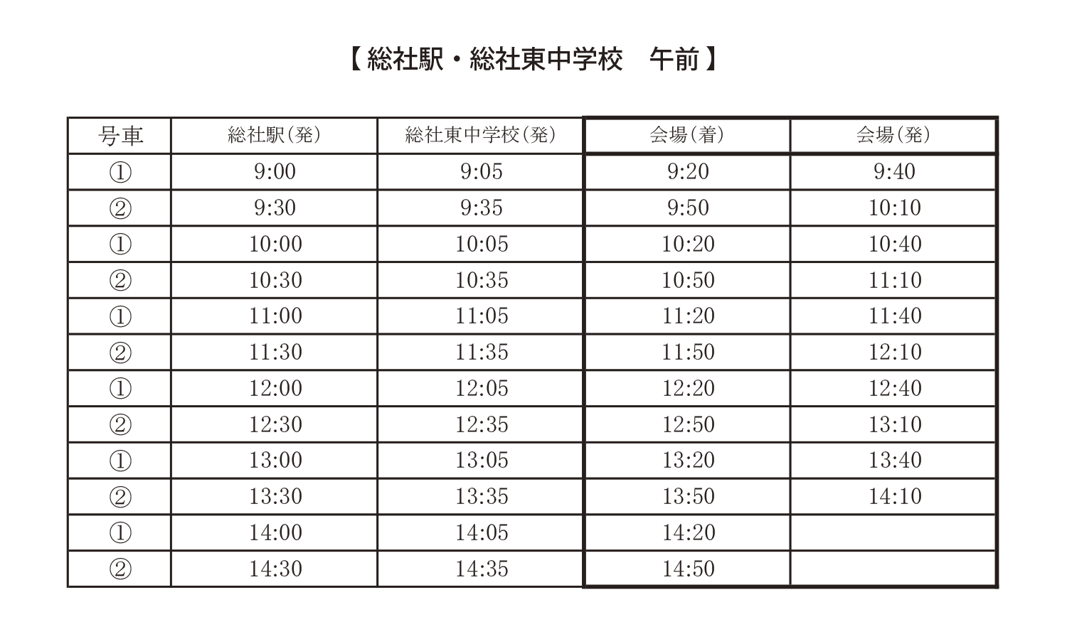 9:00より運行を開始するよう計画しておりますが、総社駅・総社東中学校のみとなります。